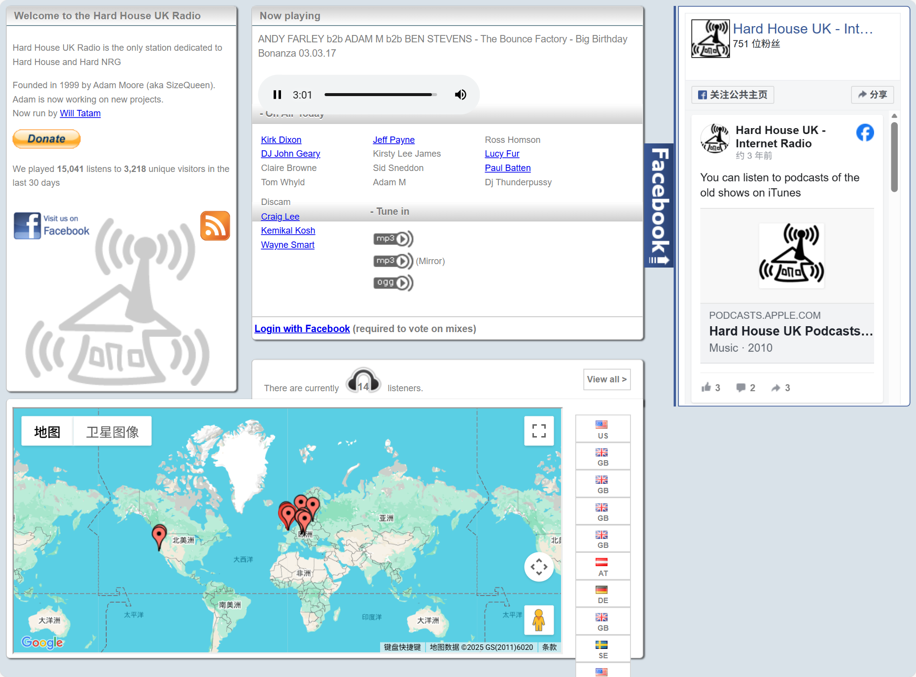 按说明来看是从1999年开始就放到了现在的24/7无间断运行式长寿电台,主要是在放Hard House领域创作者的DJ Set。仍会有十来二十来年前的没有公开放出来过的老物出现。至少在网页这里能很稳定地看着十来个的听众,网页之外的渠道或许会有更多…